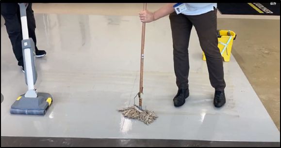 写真で見てわかる通り、モップは何度も行き来しているのに対して、【BR 30/1 C Bp】はそのまま清掃出来るから効率が良い!